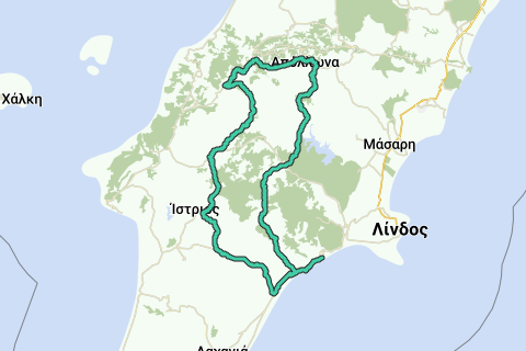 Denne sløjfe fører dig fra sydøstkysten til det barske indland på Rhodes og tilbage igen. Du cykler gennem stille bjerglandsbyer, langs en stor dæmning og overvinder skråningerne af Ataviros, den højeste bjerg på Rhodes. Det er en tur fyldt med karakter: bratte stigninger, spektakulære udsigter og autentisk græsk atmosfære.