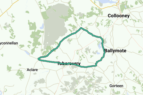 Opdag alle fordeleneUdforsk den maleriske Roadbike-rute gennem Connaught nær Kloster Cloonameehan. Passér Kloster Cloonameehan, Tubbercurry, og Tubbercurry jernbanestation. Lad os cykle!
