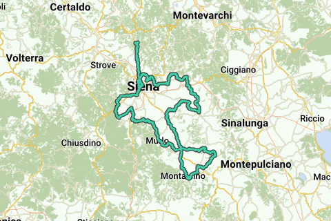 Den udfordrende Strade Bianche-rute fra Tregole giver dig mulighed for at opleve alle de ikoniske grussektioner i regionen. Ruten følger for det meste vejen for den kendte professionel konkurrence og kombinerer ru toskansk grus, stejl klatring og omkring 4.000 højde meter. Et absolut must for dem, der søger en ren strade bianche oplevelse.