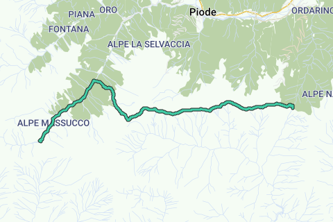 Man nedstiger langs Val d’Otro til Alpe Pianmisura, hvor man stiger op til Passo Foric, der forbinder til Vallone d’Olen, som man nedstiger for derefter at stige op til Bocchetta delle Pisse, og herfra går man til Rifugio Pastore ved Alpe Pile.