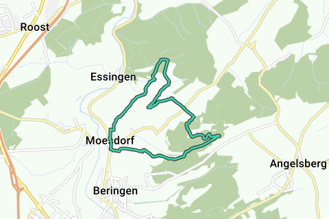 Ruten starter i centrum af Moesdorf. Vi gik sløjfen mod uret, hvilket hurtigt bragte os til en stejl stigning. Over en afstand på 2,2 km steg vi fra 220 m i Moesdorf til 496 m. Unødvendigt at sige, at vi ofte blev forkælet med fantastiske udsigter. Vandreturen følger et lille stykke af Sentier de la Petite Suisse, og det mærkes på klippeformationerne.