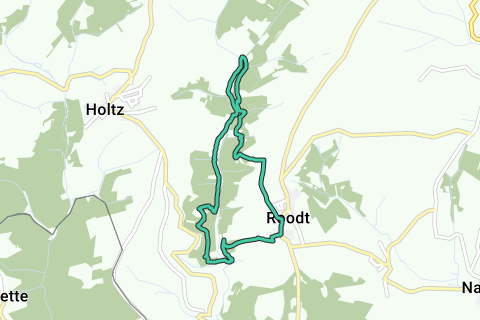 Denne vandretur fører dig langs uberørte naturskove til mystiske søer, der ligger i en frodig dal kendt som 'Riedergrënn'. En blød bæk, 'Koulbich', snoer sig gennem dette idylliske landskab. 'Riedergrënn' betyder 'dalene af Roodt', landsbyen hvorvandringen begynder. Langt væk fra hverdagens travlhed, og beliggende i et Natura 2000-naturreservat, kan naturelskere fordybe sig i et rigt tæppe af flora og fauna - et grønt paradis, der får hjertet til at banken.'