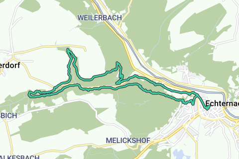 Ruten forbinder Luxembourgs ældste by med to af regionens mest imponerende geologiske højdepunkter: Wollefsschlucht ved Echternach og Huel Lee i Berdorf.