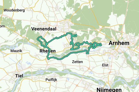 Scopri tutti i vantaggiRuten starter fra Heteren ved Nederrijn og følges mod uret. Ruten går kort langs Nederrijn og krydses derefter (langs A50).