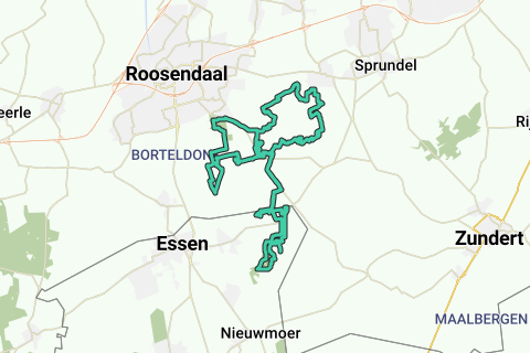 Kombination af MTB-rute Essen (grøn løkke) med Rucphen (rød løkke) og Roosendaal (grøn løkke).