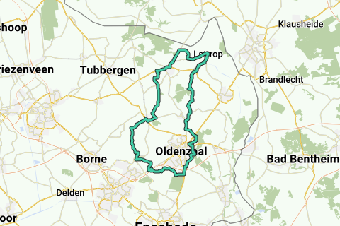 Du cykler forbi Deurningen > Weerselo > Agelo > Ootmarsum (kunst & kultur) > Tilligte > Forbi Rossum og rundt om Oldenzaal tilbage til Deurningen (tæt på Hengelo)