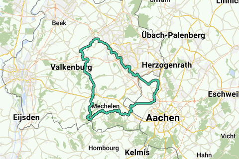 Start/slut: hjørnet af Marktstraat/Rijksweg Gulpen. Stigninger: følger. Højde meter: 614.