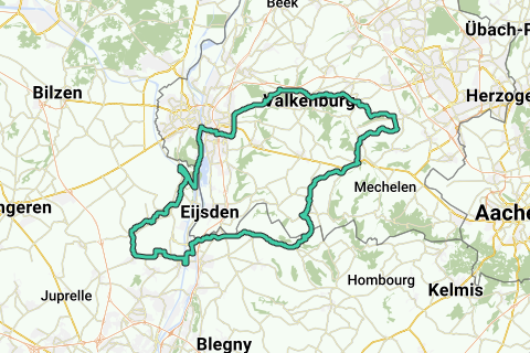 Start/slut: hjørne Marktstraat/Rijksvej Gulpen. Stigninger: følger. Højde meter: 828. Kaffepause: A vi Eben, Eben (B)
