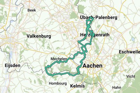 Start/ mål: De Zegelskoel, Heijenratherweg 22, Slenaken-Heijenrath. Stigninger: Grensweg Slenaken 400 m., max. 10,0%. Kasteelstraat Teuven (B) 1.200 m., max. 10,0%. Rue Terstraeten Terbruggen (B) 1.900 m., max. 8,0%. Rue les Trois Bornes Gemmenich (B) 2.200 m., max. 6,0%. Schlangenweg Seffent (D) 900 m., max. 9,0%. Duivels Bosch Kerkrade 950 m., max. 14,0%. Haanraderweg Kerkrade 750 m., max. 9,0%. Molenweg Rimburg 500 m., max. 10,0%. Korverberg Eygelshoven 800 m., max. 9,0%. Mamelisserweg/Vijlenberg Vijlen 1.200 m., max. 5,0%. Schweiberg Mechelen 2.700 m., max. 9,0%. Højde: 1.052. Kaffepause: restaurant camping De Watertoren, Kerkveldweg 1, Rimburg (ma/ti lukket).