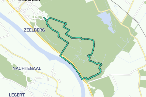 Variabel rute over godset De Hamert. Vandringen begynder ved kanten af landsbyen Wellerlooi og fører gennem skovene og over hedeområderne med et par heftige bakker til Geldersch Kanaal, en lille flod der strømmer fra Tyskland til Maas. Efter cirka ''e kilometer langs denne snoede bæk passerer du Jachthut Op den Hamer. Herfra fører ruten langs Maas og over den nordlige del af godset tilbage til udgangspunktet. Undervejs er der forskellige bænke, ofte med en smuk udsigt. Cafe lidt over halvdelen ved jagthuset.