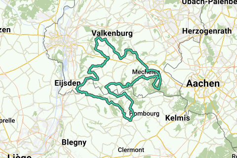 Start/ slut: De Zegelskoel, Heijenratherweg 22, Slenaken-Heijenrath. Bestigninger: Hurpersch Mechelen. Pannisberg Vijlen. Doodeman Wijlre. Trichterweg Margraten. Duivenstraat Mheer. Chermin du Boi du Roi 's-Gravenvoeren (B). Knap (delvist) St. Martens-Voeren (B). Veurs (delvist) St. Martens-Voeren (B). Magnebos Veurs (B). Plankerweg Teuven (B). Waufsberg Noorbeek. Loorberg Slenaken. Højdemeter: 1053. Kaffe stop: Break Away, Dorpsstraat 33, Sint-Geertruid (man. lukket)