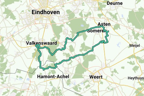 Du cykler til Someren via Waardjesweg og over cykelstien langs den Provinciale vej mod Heeze. Via Vlaamseweg og det åbne område mellem Heeze og Leenderstrijp, cykler du til Leenderstrijp. Derefter cykler du i længere tid gennem Leenderbos over smalle asfalt cykelstier, indtil lige syd for Valkenswaard. Via det åbne område syd for Valkenswaard cykler du til Dommelen, hvor du krydser Dommeldal via frikoblet cykelsti (Kaatse Bossen). Derefter cykler du mod Venbergse vandmølle.