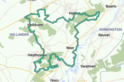Du cykler først mod Egchel (delvist over grusveje) og derefter mod Helden. Derefter cykler du over cykelstier med naturbelægning gennem Heldense skove, men du kommer også forbi nogle grusveje mellem Baarlo og Helden og mellem Helden og Neer.
