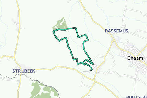 Chaamse Bæk udspringer lidt syd for den gamle Bredasvej ved Houtgoor,[2] derefter strømmer bækken under vejen og fortsætter mod nordvest, men forbliver syd for Ginderdoor. Chaamse Bæk strømmer videre til Chaamse Bækdal, ved enden af Bækdal strømmer den gennem de Chaamse skove. Bækken krydser naturområdet Chaamse Bække og løber forbi godserne Hondsdonk og Valkenberg og mellem Couwelaar og Geersbroek. Derefter strømmer vandløbet under A58 og bækken strømmer gennem Ulvenhout. Når bækken har forladt Ulvenhout, munder den ud i Mark i Markdal.