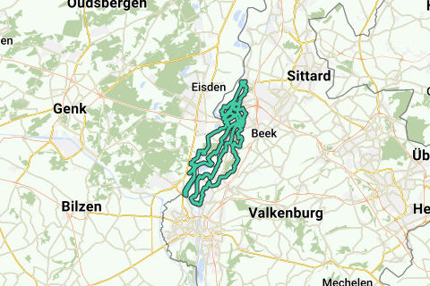 Først cykler du til Urmond og gennem flodbredden af Maas og langs Julianakanaal mod Meers. Ved Meers følger du en bred betoncykelsti og senere Maasdijk med udsigt til Maas. Derefter krydser du Julianakanaal og bevæger dig til området omkring slotruinerne i Stein (vær opmærksom på: dette er et populært vandreområde, og vejene kan være dækket af grene og blade om efteråret/vinteren). Derefter tager du cykelstien langs A76 (nordsiden) og kommer til Belgien, hvor du følger Maas ad dejligt rolige veje og dæmninger. Længere sydpå på ruten følger du også jagtstierne langs Zuid-Willemsvaart og langs Kanalen Briegden - Neerharen. Derefter cykler du gennem Oud-Rekem, et historisk landskab med slot og brostensbelagt vej.