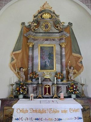 Die in 1324 m Seehöhe gelegene Kirche Oberfrohn ist der Heiligen Dreifaltigkeit geweiht und gehört zur Pfarre Sankt Lorenzen im Lesachtal.Der 1633 errichtete Bau wurde 1805 vergrößert und neu eingewölbt. Das zweiachsige Schiff besitzt einen eingezogenen 3/8-Chor und Karniesbogenfenster. Der westliche, hölzerne Dachreiter ist mit einem Zwiebelhelm bekrönt. Die Fassade wird durch gemalte Pilaster gegliedert.Im Inneren wölbt sich eine Flachtonne mit Stichkappen über das Kirchenschiff. Ein eingezogener, rundbogiger Triumphbogen verbindet das Langhaus mit dem innen abgerundeten Chor. Im Westen ist eine vorschwingende Musikempore eingebaut.
