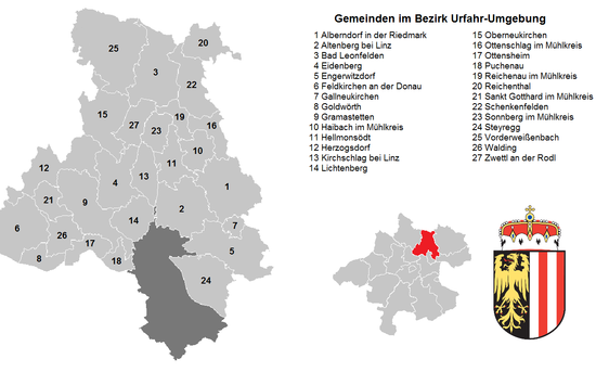 Er erstreckt sich nördlich von Linz bis an die tschechische Grenze und gehört gemäß der Einteilung der Viertel in das Mühlviertel. Sitz der Bezirkshauptmannschaft ist Linz-Urfahr, ein nördlich der Donau gelegener Stadtteil von Linz. Somit ist Urfahr-Umgebung einer der wenigen Bezirke Österreichs, die nicht direkt nach dem Sitz der Bezirkshauptmannschaft bzw. Statutarstadt benannt sind.