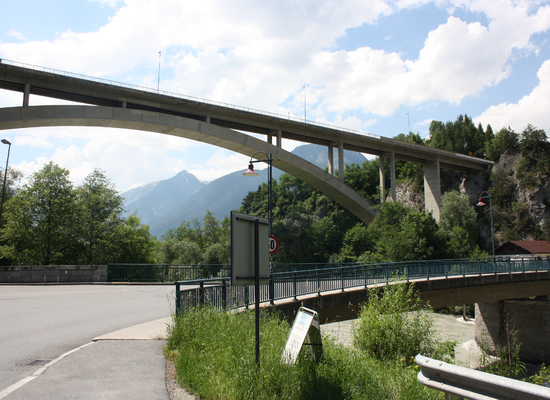 Die Pitztalbrücke ist eine Straßenbrücke im Oberinntal östlich von Imst in Tirol. Sie überspannt den Inn, die Arlbergbahn und die Zufahrt zum Bahnhof Imst-Pitztal . Über sie führt die Pitztalstraße , die das Pitztal an die Tiroler Straße und die Inntal Autobahn anbindet.Vor dem Bau der Brücke war die Zufahrt ins Pitztal ein Nadelöhr, die Straße führte rund 50 Höhenmeter von der Tiroler Straße zur Talsohle und auf der anderen Seite durch den Arzler Wald wieder steil und kurvenreich hinauf. Mit zunehmendem Verkehr wuchs der Wunsch nach einer schnelleren und sicheren Erreichbarkeit des Tals und des 1983 eröffneten Gletscherschigebiets im Talschluss. In zweijähriger Bauzeit wurde die Brücke nach Plänen von Mayreder, Kraus & Co. errichtet und am 24. September 1983 mit rund 6000 Besuchern eröffnet. Die Baukosten betrugen rund 50 Millionen Schilling.