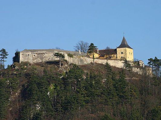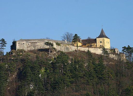 Schloss Pitten, auch Burg Pitten genannt, ist eine im 19. Jahrhundert zu einem Jagdschloss umgebaute ehemalige Höhenburg in der Marktgemeinde Pitten in Niederösterreich.An der Stelle einer alten, durch Gräben und Palisaden gesicherte Wallanlage auf dem Bergsporn über der Pfarrkirche Pitten wurde vermutlich in der Mitte des 11. Jahrhunderts eine Burg errichtet. Von dieser einst wehrhaften Anlage, die erstmals 1094 urkundlich erwähnt wurde und auch im Nibelungenlied genannt wird, existieren heute nur mehr Abbildungen. In der dominanten Lage sicherte die Burg die Grenze nach Ungarn ab, wurde dennoch 1482 von Matthias Corvinus nach vierjähriger Belagerung eingenommen und zerstört. Als sich die Vorräte dem Ende neigten, sandte der Legende nach Wolfgang Teufel Pfleger von Pitten dem Ungarnkönig seine letzten Hasen, Brot und Wein, um zu zeigen, dass sein Vorratskeller noch gut gefüllt wäre, woraufhin Corvinus die Belagerung zunächst abbrach, und sie erst zerstörte, nachdem er die List durchschaut hatte. Als Anerkennung erhielt Wolfgang von Pitten den Pittener Corvinusbecher, der sich heute im Besitz der Gemeinde Pitten befindet. Die danach wiederaufgebaute und vergrößerte Anlage hielt jedoch 1529 und 1683 den Türken stand.Der berühmte 140 m tiefe Brunnen wurde von Johann Christoph Teufel Freiherr zu Gundersdorf beauftragt. Er wurde händisch in die Tiefe getrieben, da zu dieser Zeit Schießpulver noch nicht zum Sprengen verwendet wurde.