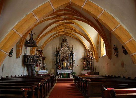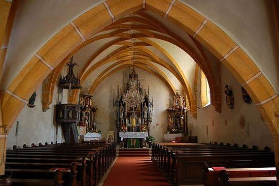 Der Kirchweiler in einer Hanglage an der Schlattenbach-Talstraße wurde 1144 als Pfarre urkundlich genannt und ist die älteste Tochter der Pfarre Pitten. Die Pfarre wurde 1160 dem Stift Reichersberg inkorporiert und wurde zum Mittelpunkt des Klosterbesitzes in der Buckligen Welt. Dendrochronologische Datierungen des Dachstuhles der Kirche nennen die Jahre 1405, 1422, 1475, 1557. Die Kirche wurde 1496 geweiht. Die ursprüngliche Ringmauer mit Türmen und Vorwerk der Wehrkirche wurde 1824 demoliert und ein Westportal angelegt. Eine Innenrestaurierung mit Grabungen fand 1981/1982 statt.
