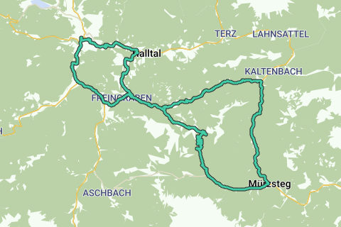 Mountainbiketour von Mariazell über die Dürriegelalm nach Mürzsteg, und über Frein durch den Freingraben und die Mooshuben wieder retour nach Mariazell. Wer noch mehr Höhenmeter bewältigen will, kann einen Abstecher auf die Königsalm machen.