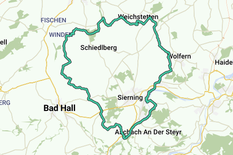 Angenehmes Kennenlernen, Steyr-Land. Diese Route führt entlang des Schattens eines Schlosses (Schloss Piberbach). Wenig Chancen, dass Sie entlang dieser Route viel Autos sehen. Fast die ganze Route ist wellig und leicht hügelig mit einigen schneidigen Steilhängen. Eine Route, die Sie sicher bezaubern wird. Insgesamt, eine schöne Route!