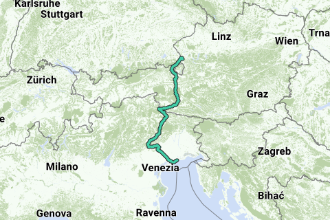 Salzburg HBF - Neunbrunnen - Großglockner - entlang der Piave - Valdibbiadene - Caorle