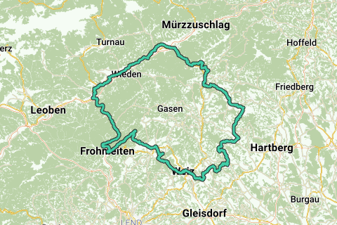 Kindberg - Alpl - Wenigzell - Pöllau - Rabenwald - Stubenberg am See - Puch bei Weiz - Weiz - Passail - Rechberg - Frohnleiten - Bruck an der Mur - Kindberg