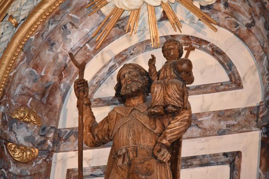 Sint-Kristoffel wird also seit uralten Zeiten in dieser Pfarrei verehrt. Möglicherweise ist die Nähe des Dender und das Vorhandensein einer Quelle ein Anknüpfungspunkt dafür, dass dieser Heilige als Patron der Kirche gewählt wurde. Laut der Legende trug der Riese Reprobus Menschen auf seinem breiten Rücken über den Fluss. Eines Tages stand dort ein kleines Kind. Der Riese nahm es auf seine Schultern, das Wasser stieg, das Kind wurde schwerer und schwerer und Reprobus brach fast zusammen. Am anderen Ufer stellte sich heraus, dass das Kind Christus selbst war. Er erzählte, dass er so schwer sei, weil er die Last der ganzen Welt trüge. Jesus Christus taufte den Riesen im Fluss und gab ihm den Taufnamen Christophorus (Kristoffel), was Christus-Träger bedeutet… Der heilige Kristoffel, der übrigens 1969 vom Vatikan aus dem Heiligenkalender entfernt wurde, aber sehr populär blieb, wurde gegen Gewitter, Hagel, Zahn- und Kopfschmerzen sowie gegen eine unbußfertige und plötzliche Todesart angerufen. Später wurden diese Schutzgebete um gefährliche Drüsen und Geschwulste, Pest, Cholera, Feuer, Geschwüre und schließlich: Blitz ergänzt. Bei der Gründung der Bruderschaft im Jahr 1937 kam auch der Schutz gegen Unfälle auf der Straße hinzu.