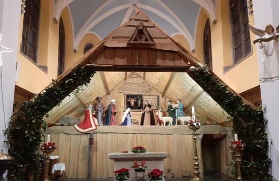 Pollare hat viel mit Weihnachten zu tun: Zu Weihnachten füllt eine bemerkenswert große Krippe (B) den gesamten Chor. Es handelt sich um eine Initiative von 1950 des fleißigen Pastors Claus, der auch das Kristoffelbild an der Ecke des „Plaatsberg“, dem Hügel zur Kirche, sowie die große Marienkapelle Mutter Gottes auf der Echel errichten ließ.