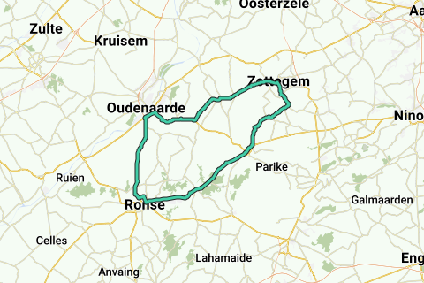 Rennradstrecke entlang der Hauptstraßen Zottegem-Ronse, Ronse-Oudenaarde und Oudenaarde-Zottegem....