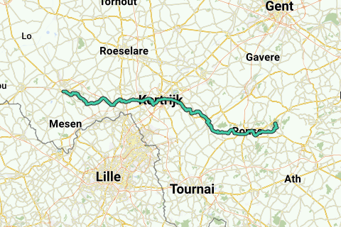 Insbesondere der zweite Teil ab Avelgem ist sehr schön. Leicht hügelig, aber sehr steile Steigungen werden vermieden.