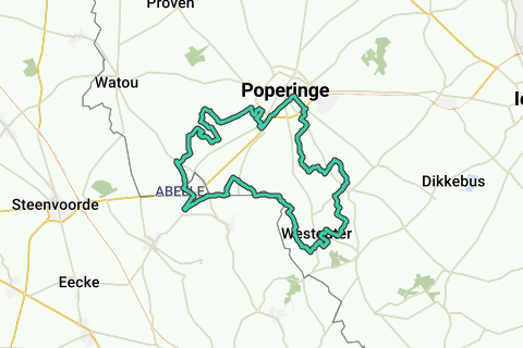 Die blaue Schleife der Mountainbikeroute in Poperinge ist eine Strecke von etwa 37,2 km.