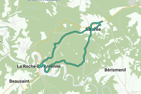 nach La Roche en Borzée. Schöne Wanderung durch die Wälder mit Aussicht auf die wunderschöne Natur und Hügelzüge. Auf der Wanderung kommen Sie an 2 schönen Terrassen vorbei für eine wohlverdiente Pause.