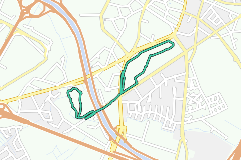 Kurze und ruhige Laufstrecke entlang zweier grüner Gebiete.