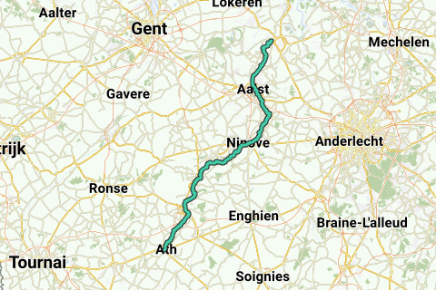 Wir starten am Sas in Dendermonde, um an der Pont d'Or in Ath zu enden. Die Strecke ist durch viele Kurven gekennzeichnet. Der Weg ist nicht nur sehr kurvenreich, sondern außerdem nicht wirklich breit, also immer auf entgegenkommende Fahrzeuge aufpassen!!!