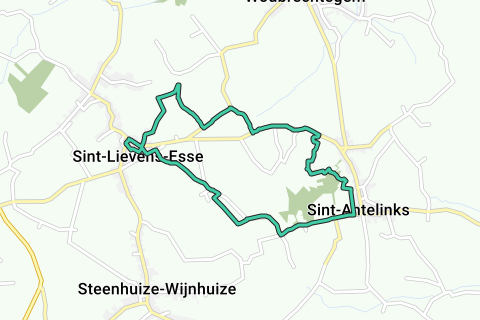 Von dort geht es über langsame Wege zur "De Leeuw van Esse". Wir folgen der Zavelstraat und machen einen Umweg zu einer schönen Kapelle. Von dort zurück über die Zavelstraat zur Ransbekestraat, die wir ganz nach oben zur Kirche gehen. Von dort tauchen wir in den Duivenbos ein und kommen in der Kauwstraat von SLE heraus, die wir nach links abbiegen. Wir folgen dieser eine Weile, um erneut rechts auf einen langsamen Weg zu wechseln, der uns zur Hoevewinkel de Kollebloem bringt. Wir gehen auf Esse zu, um erneut einen langsamen Weg rechts einzubiegen. Von dort geht es in Richtung alte Trambaan und weiter in Richtung der Bronstraat, die in die Kauwstraat mündet. Hundert Meter weiter stehen wir wieder am Sint-Lievensplein.
