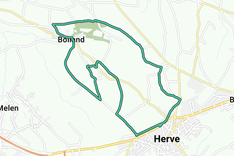 Rundkurs in Schleifenform durch die Gemeinde Herve. Es wird empfohlen, sich die Karte zu kaufen, die im Maison du Tourisme des Landes Herve erhältlich ist. Folgen Sie der Beschilderung „Blaue Pfeil“ (siehe Foto oben).