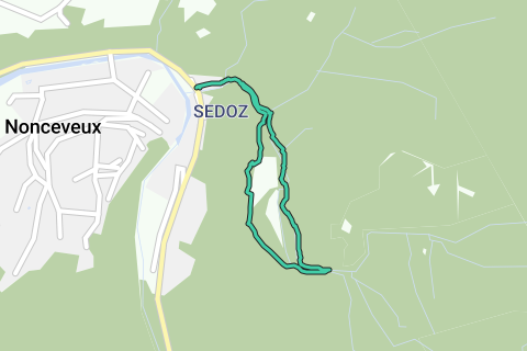 Der Spaziergang beginnt auf dem Parkplatz des Tals der Ninglinspo in Richtung Wald und überquert den Bach des Vieux Chera. Anschließend verläuft der Weg parallel zum Waldbach Ninglinspo in Richtung eines Kiefernwaldes, um dann zu den "Crahay"-Felsen abzusteigen und deren Spitze zu erreichen. Der Spaziergang führt dann ins Tal zurück. Rückkehr zum Parkplatz. Waldanteil: 92%.