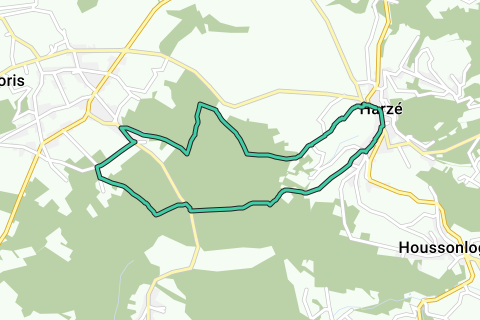 Die Wanderung beginnt an der Kirche in Harzé, zunächst in Richtung Werbomont und anschließend zum Kreuz Baptisse. Der Weg endet im Weiler Hermiterie (Aussichtspunkt), um dann ein Stück auf dem Gebiet der Gemeinde Ferrières zu gehen. Den Wald Chastrée durchqueren bis zum Kreuz Pirlot, um die Kapellen St. Roch und St. Hubertus zu erreichen. Der Weg führt in Richtung der zweiten Kapelle St. Roch (enormer Eichenbaum), um ein Stück weiter die Gemeinde Aywaille wieder zu erreichen und über Piromboeuf (Bauernhof) zur Kirche von Harzé zu gelangen. Prozentsatz Wald: 40%.