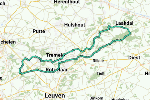 Ansprechende flache Radtour durch die Witloofregion, das grüne Hageland, ein schönes Stück der Antwerpener Kempen und eine Mischung aus Wald und Heide in den Limburgischen Kempen mit viel Abwechslung. Die Fahrt verläuft hauptsächlich auf verkehrsarmen kleinen Straßen und auch auf autofreien Uferwegen entlang der schlängelnden Demer und des Kanals Leuven-Dijle. Auf dieser Route gibt es einige wenige Schotterstrecken in ruhigen Naturschutzgebieten. Diese Radtour hat keine eigene Beschilderung.