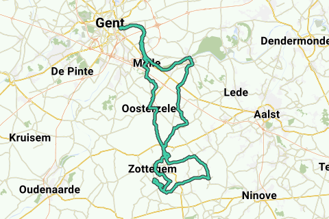Relativ flache Rennradroute, die uns von Dorfkern zu Dorfkern führt: Wijnhuize, Woubrechtegem, Oombergen, St. Lievens Houtem, Westrem, Massemen, Wetteren, Gijzenzele, Oosterzele, Godveerdegem, Erwetegem...