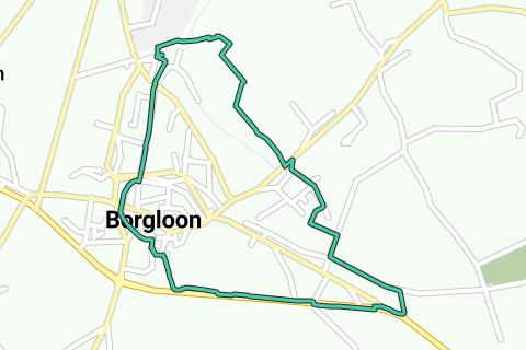 Von Stationsplein, 3840 Borgloon, Belgien, ruhige Reise durch die Natur, Bebauung und Siedlungsstraßen, auf dem Rückweg fahren wir teilweise über Fahrradwege und die alte Stadtmauer zurück zum Stationsplein.