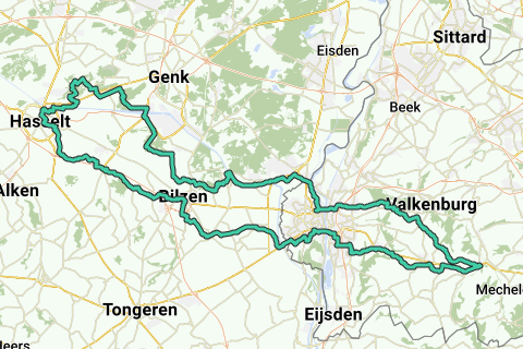 Start/Ziel; Ecke Marktstraße/Rijksweg Gulpen. Anstiege: folgen. Höhenmeter: 652. Kaffeepause: Brasserie de Vogelsanck Hasselt (B) (täglich geöffnet).