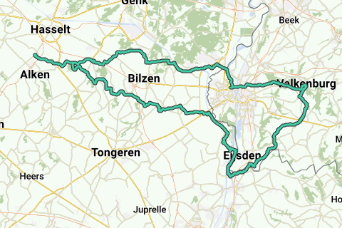 Über Crijt, Schoonbeek, Munsterbilzen, Gellik, Lanaken, Smeermaas, Maastricht, Berg en Terbijt, Vilt, Cauberg, Sibbe, Ijzeren, Margraten, Libeek, Heiweg, Eysden, Lanaye, Kanne, Vroenhoven, Lafelt, Vlijtingen, Spouwen, Hoeselt, Vliermaalroot und Houbrechtstraat