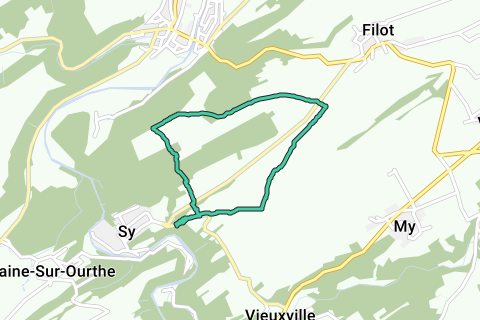 Abwechslungsreicher Spaziergang entlang kleiner Wege und breiter Feld- und Waldwege. Ungefähr 1 km Asphalt. Parken ist in der Nähe von les Rochers de Sy neben dem Weg von Sy nach Vieuxville möglich.