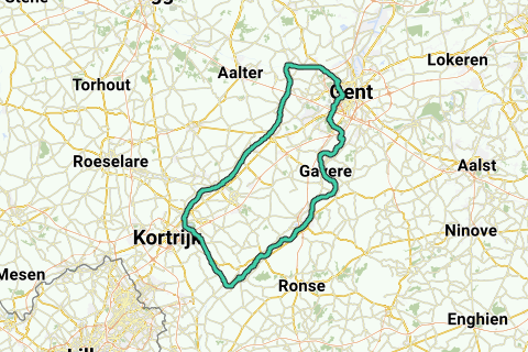 Entspannende Schleife entlang der Jagdpfade entlang der Schelde, des Kanals Kortrijk-Bossuyt, der Leie und des Kanals Gent-Ostende.