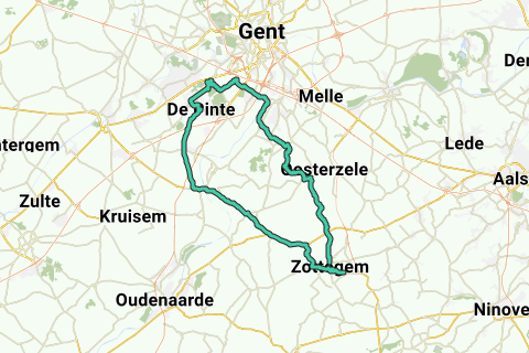 HIN: Über Strijpen, Velzeke, Beerlegem fahren wir zum Bahnhof von Gavere-Asper. Von hier folgen wir der Eisenbahnlinie bis De Pinte, um dann über die Knotenpunkte 51/24/79/23/22/88 zum Parkwald zu fahren.