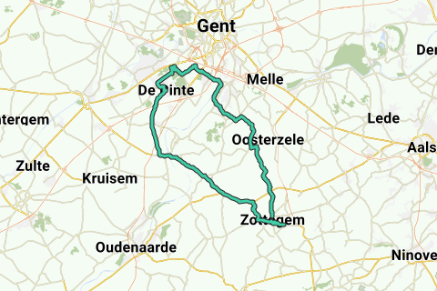 HIN: Über Strijpen, Velzeke, Beerlegem radeln wir zum Bahnhof von Gavere-Asper. Von hier folgen wir der Bahnlinie bis De Pinte, um dann über die Knotenpunkte 51/24/79/23/22/88 zum Parkwald zu radeln.