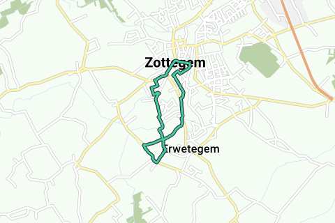 Zu Bahnhof und Markt Zottegem. Hinweg über den Pfad Kronegem und Sanitary. Rückweg über die Pfade Meire und Stopweide...